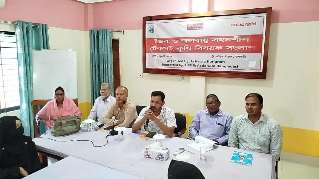 ফুলবাড়ীতে জৈব ও জলবায়ু সহনশীল টেকসই কৃষি বিষয়ক সংলাপ অনুষ্ঠিত হয়েছে। মঙ্গলবার ৭ জুলাই সকাল দশটায় কুড়িগ্রামের ফুলবাড়ী উপজেলার অফিসার্স ক্লাবে উদয়াঙ্কুর সেবা সংস্থার আয়োজনে একশন এইড বাংলাদেশ-এর সহযোগিতায় এক্টিভিস্টা কুড়িগ্রামের বাস্তবায়নে, উদয়াঙ্কুর সেবা সংস্থার প্রকল্প সমন্বয়কারী রবিউল ইসলামের সঞ্চালনায় জৈব ও জলবায়ু সহনশীল টেকসই কৃষি বিষয়ক সংলাপ অনুষ্ঠিত হয়েছে।