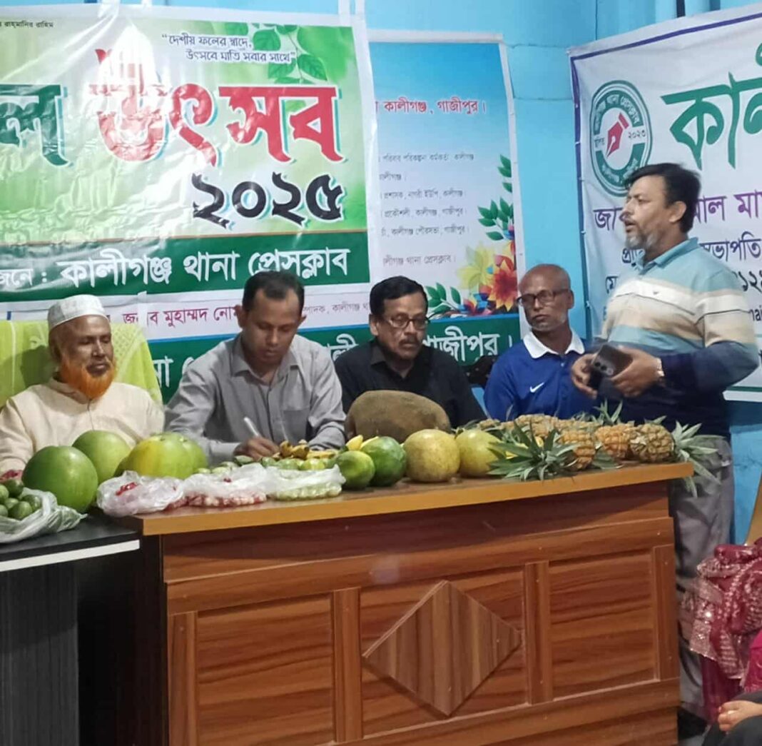 কালীগঞ্জ থানা প্রেসক্লাব কার্যালয়ে বিকাল ৩ ঘটিকার সময় মৌসুমি দেশি ফল উৎসব এর উদ্বোধন করেন সভাপতি জাকারিয়া আল মামুন। মৌসুমি দেশি ফল উৎসবে উপস্থিত ছিলেন গাজীপুর জেলা প্রেস ক্লাবের সাধারণ সম্পাদক মো: শফিকুল ইসলাম, দৈনিক মুক্ত সংবাদ এর বার্তা সম্পাদক আসাদুজ্জামান আকাশ, কালীগঞ্জ প্রেস ক্লাবের প্রতিষ্ঠাতা সভাপতি অধ্যাপক মোখলেছুর রহমান, অর্থ বিষয়ক সম্পাদক মোঃ কাজী মুঞ্জুর হোসেন, কালীগঞ্জ টেলিভিশন সাংবাদিক ক্লাবের সভাপতি মোঃ মুজিবুর রহমান, বাংলাদেশ প্রেস ক্লাব কালীগঞ্জ উপজেলা শাখার সাধারণ সম্পাদক ও কালীগঞ্জ রিপোর্টার্স ইউনিটির যুগ্ম সাধারণ সম্পাদক মো: মুক্তাদির হোসেন, কালীগঞ্জ রিপোর্টার্স ইউনিটির ক্রীড়া বিষয়ক সম্পাদক মোঃ শাহ নেওয়াজ, কালীগঞ্জ উপজেলা সাংবাদিক ফোরামের সাধারণ সম্পাদক মারুফ হাসান, কালীগঞ্জ উপজেলা প্রেস সোসাইটির যুগ্ম সাধারণ সম্পাদক ইশরাত জাহান পাপিয়া, পলাশ উপজেলা প্রেস ক্লাবের সদস্য মো: মামুন মোড়ল, সহ কালীগঞ্জ থানা প্রেস ক্লাবের সদস্য বৃন্দ।