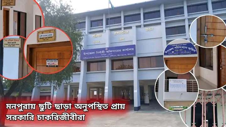 ভোলা জেলার দ্বীপ উপজেলা মনপুরায় সরকারি ছুটির দিন নয় এমন দিনেও অধিকাংশ সরকারি অফিস বন্ধ থাকতে দেখা গেছে। সরেজমিনে ঘুরে স্থানীয় সাংবাদিকদের ক্যামেরায় ধরা পড়ে এই চিত্র। খোলা থাকা কয়েকটি দপ্তরেও ছিল না কোনো কর্মকর্তা-কর্মচারীর উপস্থিতি।