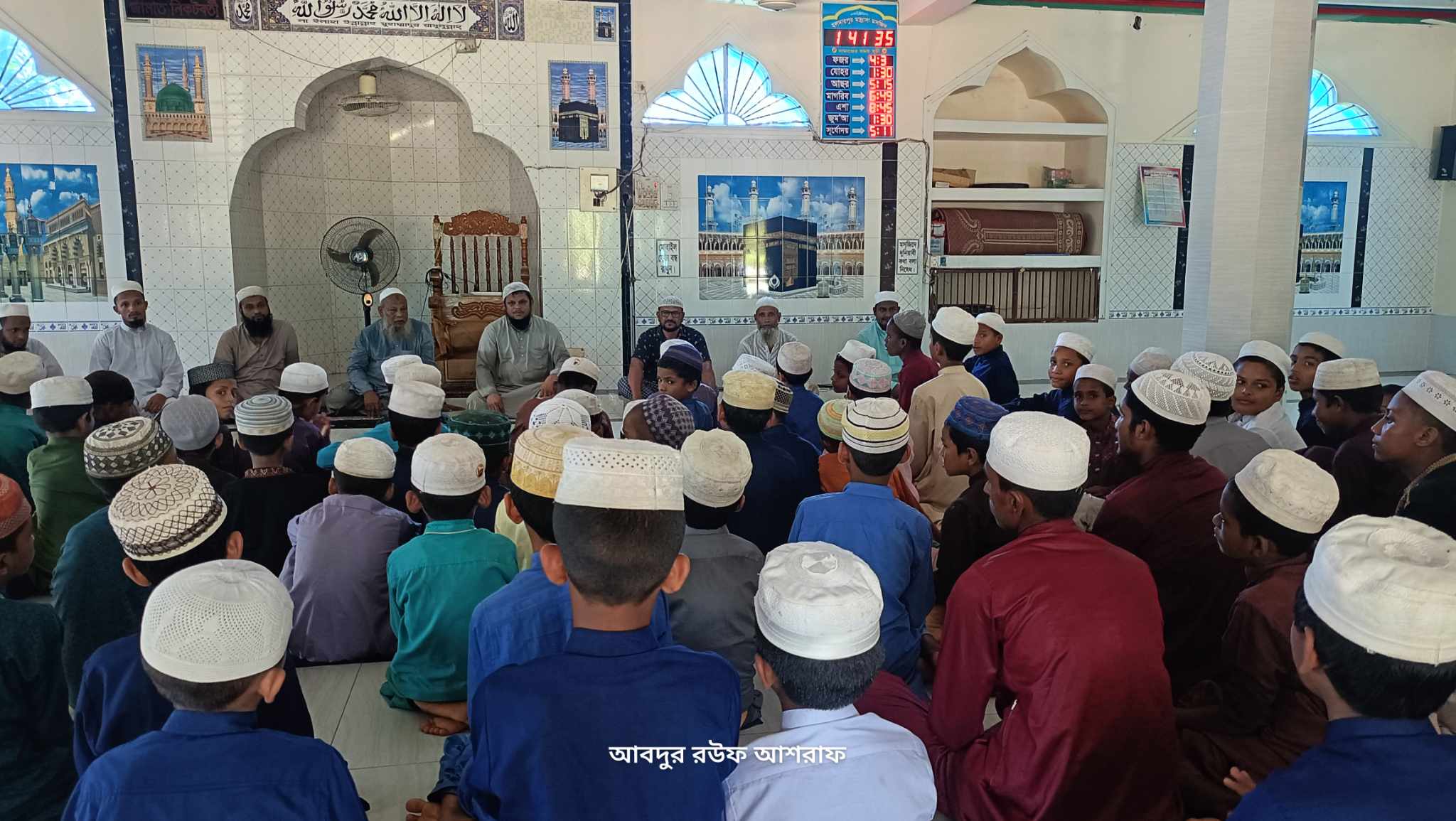 আজ ২২ জুলাই, মঙ্গলবার, বাদ যোহর জামিয়ার মসজিদে মাদরাসার মুহতামিম সাহেবের সভাপতিত্বে এক দোয়া মাহফিল অনুষ্ঠিত হয়। উক্ত দোয়া মাহফিলে উপস্থিত ছিলেন মাদরাসার সভাপতি মাওলানা মাসুদ খান, এলাকার বিশিষ্ট সমাজসেবক ডা. শেখ আব্দুল মুকিত, মাওলানা শিব্বির আহমদসহ মাদরাসার শিক্ষক স্টাফ ও শিক্ষার্থীরা৷