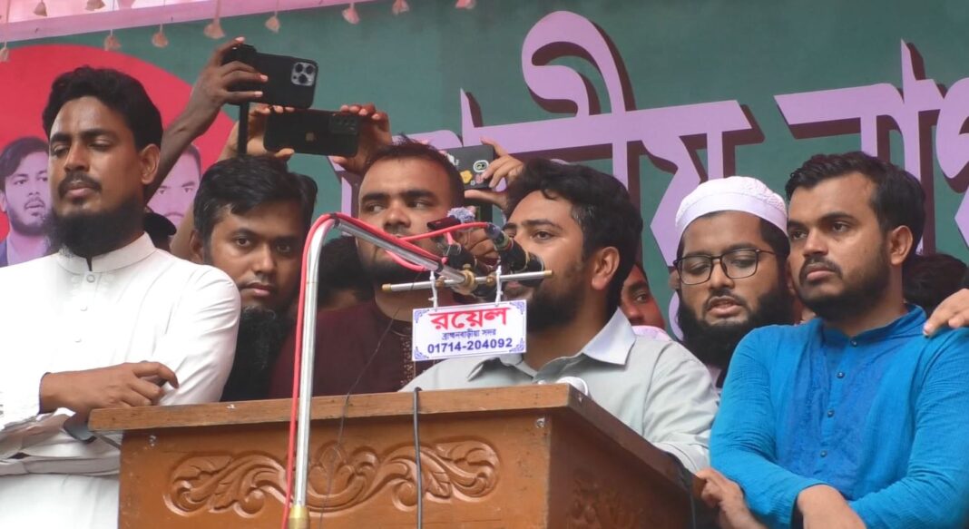 দেশ গড়তে ব্রাহ্মণবাড়িয়ায় ২৪ তম দিনের মত জুলাই পদযাত্রা কর্মসূচী করেছে জাতীয় নাগরিক পার্টি (এনসিপি)। এ সময় এনসিপির আহ্বায়ক নাহিদ ইসলাম বলেন, ২০২১ সালে মৌদি বিরোধী আন্দোলন করতে গিয়ে ব্রাহ্মণবাড়িয়ায় অনেক নিহত হয়েছেন তাদেরকে শহীদি মর্যাদা দিতে হবে। তিনি বলেন, আাগামী ৫ই আগষ্ট এর আগে জুলাই সনদ ও ঘোষনা পত্র দাবী আদায় করা হবে। আজ বৃহস্পতিবার ব্রাহ্মণবাড়িয়া পৌর মুক্ত মঞ্চ এ এনসিপির আয়োজনে জুলাই পথ যাত্রা এক সভায় এসব কথা বলেন।
