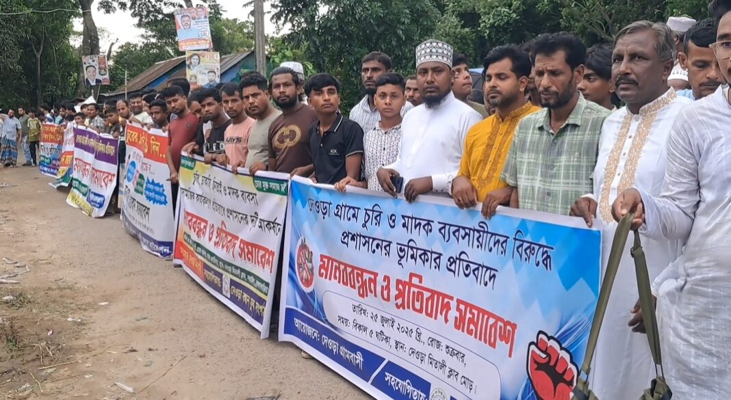 ব্রাহ্মণবাড়িয়ায় চুরি ও মাদকের বিরুদ্ধে প্রতিবাদী পথসভা ও মানববন্ধন অনুষ্ঠিত হয়েছে। শুক্রবার বিকেলে সরাইল উপজেলার দেওড়া গ্রামবাসীর উদ্যোগে আয়োজিত অনুষ্ঠানে বক্তব্য রাখেন প্রভাষক মাহবুব খান বাবুল, ভোক্তাভুগীদের মধ্যে বক্তব্য রাখেন, ইমাম হোসেন, সাহাদ আলী, আল আমীন, নাসির।