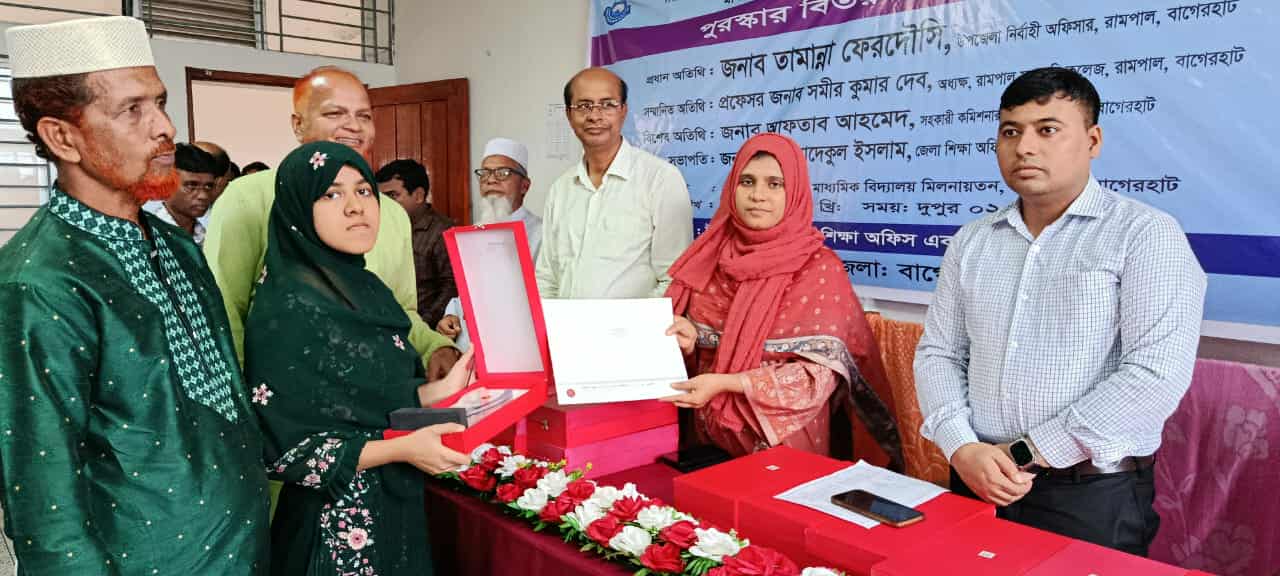 বাগেরহাটের রামপালে ৩৭ জন কৃতি শিক্ষার্থীর মাঝে সনদ পুরস্কার বিতরণ করা হয়েছে। সোমবার (২৮ জুলাই) দুপুর ২ টায় উপজেলার শ্রীফলতলা পাইলট মাধ্যমিক বিদ্যালয় মিলনায়তন এ পুরস্কার বিতরণ করা হয়।