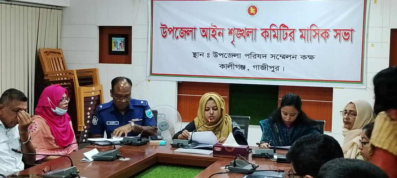 কালীগঞ্জ উপজেলা আইনশৃঙ্খলা কমিটি ও মাসিক সভা অনুষ্ঠিত হয়েছে। মঙ্গলবার (২৯ জুলাই) সকাল ১১ ঘঠিকার সময় কালীগঞ্জ উপজেলা পরিষদের হলরুমে এ সভা অনুষ্ঠিত হয়। সভায় সভাপতিত্ব করেন কালীগঞ্জ উপজেলা নির্বাহী কর্মকর্তা (ইউএনও) তনিমা আফ্রাদ।