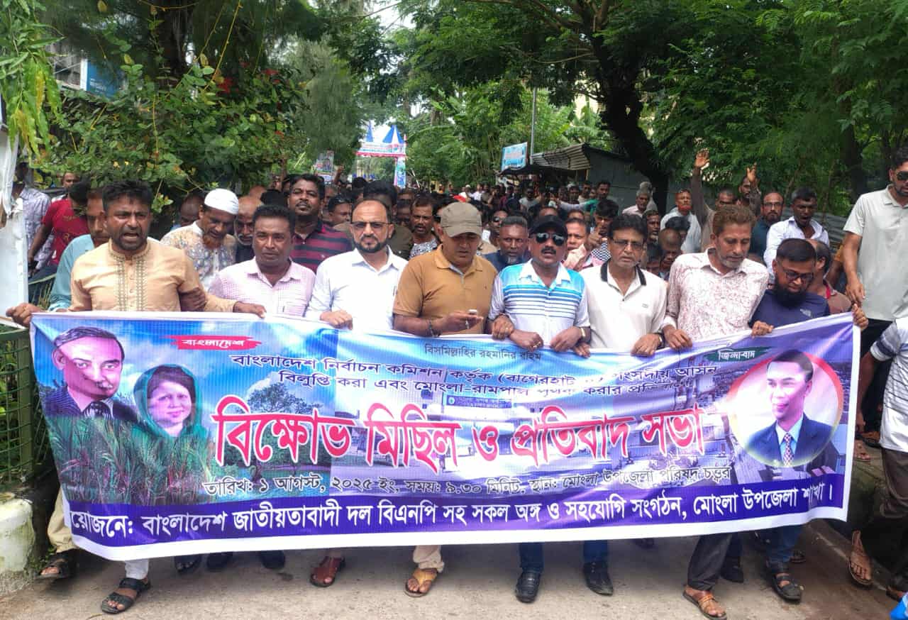 শুক্রবার (১লা আগষ্ট) সকাল ১১টায় বাংলাদেশ জাতীয়তাবাদী দল বিএনপি মোংলা উপজেলা শাখা ও সকল অঙ্গ ও সহযোগী সংগঠনের আয়োজনে বাংলাদেশ নির্বাচন কমিশন কর্তৃক (বাগেরহাট-৪) সংসদীয় আসন বিলুপ্তি করা এবং মোংলা-রামপাল পৃথক করার প্রতিবাদে বিক্ষোভ মিছিল শেষে প্রতিবাদ সভায় এসব কথা বলেন বক্তারা। বক্তারা আরও বলেন, জনগণের প্রকৃত প্রতিনিধিত্ব নিশ্চিত করতে হলে আসন সংখ্যা হ্রাস নয়, বরং যথাযথ প্রতিনিধিত্ব ও অংশগ্রহণ নিশ্চিত করাই হওয়া উচিত। তিনটি আসন মানা হবে না, চারটি আসন বহাল থাকুক এটাই মোংলা উপজেলার প্রত্যেক নাগরিকের দাবি।
