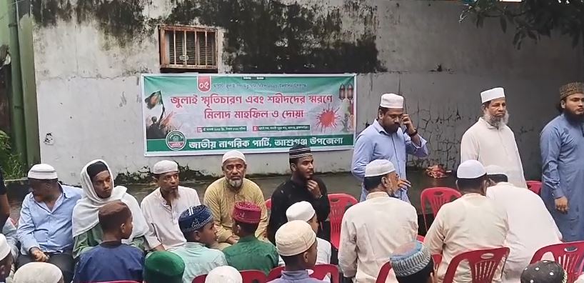 এনসিপির আশুগঞ্জ উপজেলার প্রধান সমন্বয়কারী আমিনুল ইসলাম ডালিম বলেন, বিকেল পাঁচটায় আশুগঞ্জের কাচারি পুকুর পাড়ে জুলাই গণঅভ্যুত্থান দিবস উপলক্ষে শহীদের স্মরণে মিলাদ মাহফিল করেছি। উপজেলা ভূমি কার্যালয়ের পেছেন শেখ মুজিবুর রহমানের একটি ম্যুরাল ছিল। ম্যুরালটি টিনের বেড়া ও গুনা দিয়ে তারা ঢেকে রেখেছিল। তিনি দাবি করেন বর্তমানে এটি মীর মুগ্ধ চত্বর। মিলাদ মাহফিলের জন্য মঙ্গলবার সকালে এনসিপির সদস্যরা সেখানে পরিস্কার করতে যান। পরিস্কার করতে গিয়ে টিনের একটি বেড়া খুলে ছিল। এজন্য উপজেলা সহকারী কমিশনার (ভূমি) ফোন করে আমাদের পুলিশ দিয়ে গ্রেপ্তারের হুমকি দেন। আমি বলেছিলাম আমাদের বাধা দিয়েন না। আমরা অনুষ্ঠানটি করে ফেলি। কিন্তু সেখানে অনুষ্ঠান করা যাবে না বলে জানান তিনি। তিনি বলেন, হুমকির বিষয়টি বানোয়াট।