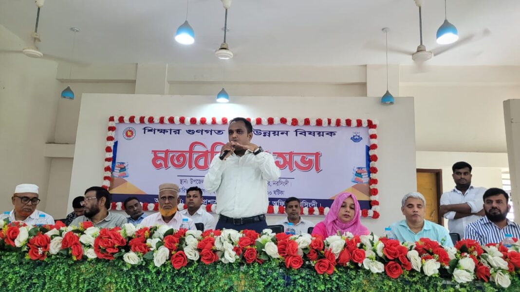 নরসিংদীতে শিক্ষার গুণগত মান উন্নয়নে সকল কলেজ, মাধ্যমিক বিদ্যালয় ও মাদরাসার প্রিন্সিপাল ও প্রধান শিক্ষকদের সাথে মতবিনিময় সভার আয়োজন করা হয়েছে নরসিংদী সদর উপজেলা পরিষদের হলরোমে।