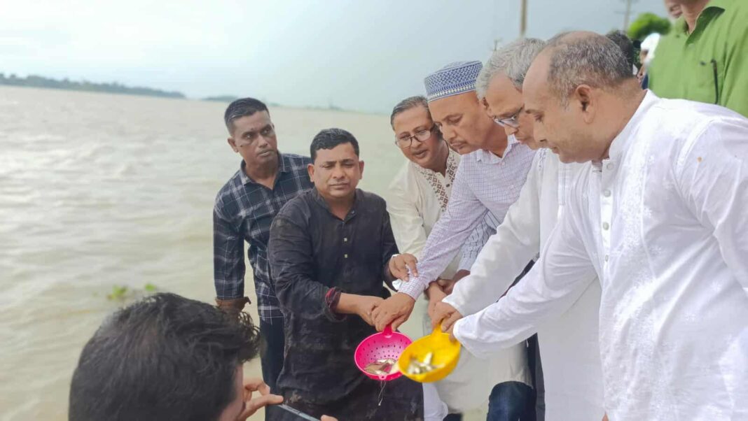 শনিবার (২৩ আগস্ট) দুপুরে উপজেলার মসজিদজাম সরকারী প্রাথমিক বিদ্যালয় সংলগ্ন ধলেশ্বরী নদীতে এ মৎস্য পোনা অবমূক্ত করেন জাতীয়তাবাদী মৎস্যজীবি দলের সদ্য সাবেক সদস্য সচিব ও মৎস্য পোনা অবমূক্তকরণ অনুষ্ঠানের প্রধান অতিথি আবদুর রহিম।