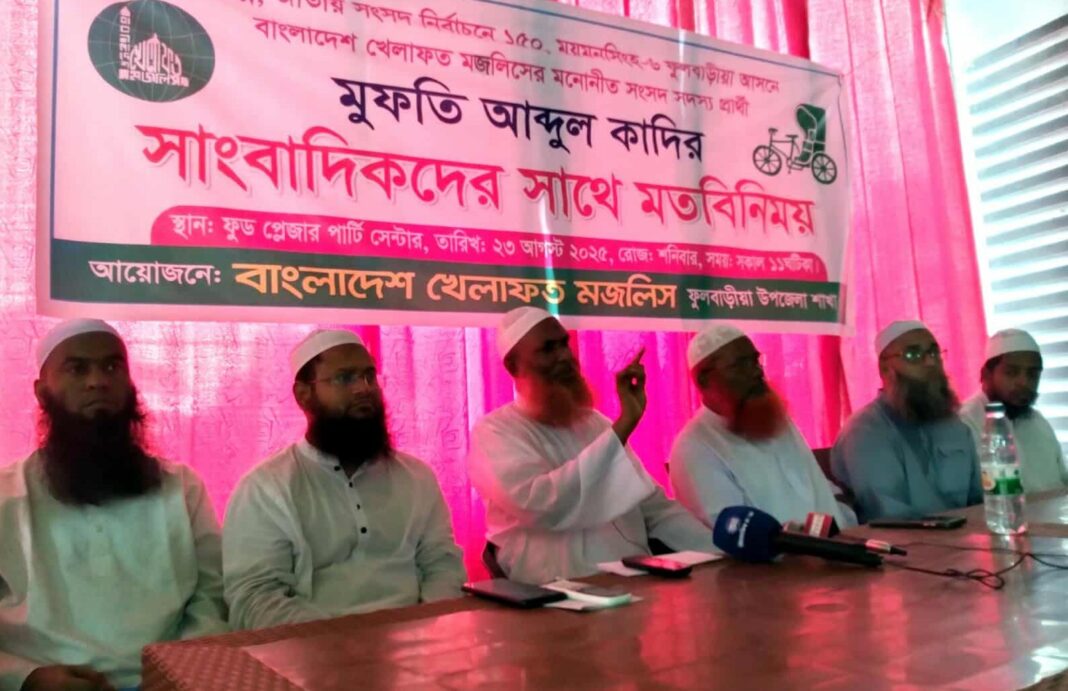 ইসলাম ভিত্তিক রাজনীতিতে কোন পরাজয় নেই, ব্যর্থতা নেই- সহজ। আমরা যদি জয়যুক্ত নাও হতে পারি আমরা সফল। কেন? ধর্মের কাজে কোন ব্যর্থতা নেই। ব্যর্থতা যত আছে সব দুনিয়াবী কাজের ভেতরে। আসন্ন জাতীয় সংসদ নির্বাচনে ১৫০, ময়মনসিংহ -৬ ফুলবাড়িয়া আসনে বাংলাদেশ খেলাফত মজলিসের মনোনীত সংসদ সদস্য প্রার্থী মুফতি আব্দুল কাদির সাংবাদিকদের সাথে মতবিনিময়কালে তিনি এসব কথা বলেন।