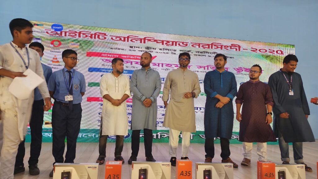 নরসিংদী জেলা প্রশাসক মোহাম্মদ রাশেদ হোসেন চৌধুরীর সভাপতিত্বে নরসিংদী আইসিটি ক্লাবের উদ্যোক্তা আওলাদ হোসেন জনি, এম আর ফারাবি, আবির মৃধা, সাইদুল ইসলাম রাকিব সার্বিক তত্ত্বাবধানে ছিলেন।এ অলিম্পিয়াডে বিজয়ীদের হাতে পুরস্কার তুলে দেন নদীবাংলা গ্রুপের পরিচালক মাহবুবুর রহমান, জাতীয় নাগরিক পার্টি (এনসিপি)-র যুগ্ম আহ্বায়ক সারোয়ার তুষারসহ অন্যান্য অতিথিবৃন্দ।এছাড়া অলিম্পিয়াডে আরও উপস্থিত ছিলেন নরসিংদী জেলা বিএনপির যুগ্ম-সাধারণ সম্পাদক প্রকৌশলী মফিজুল ইসলাম, জামায়াত নেতা ইব্রাহীম ভূইয়া, ইসলামী আন্দোলন নেতৃবৃন্দ সহ এনসিপির নরসিংদী জেলা-উপজেলা পর্যায়ের কর্মী ও জুলাই আন্দোলনে বৈষম্যবিরোধী ছাত্র জনতা এবং স্থানীয় গণ্যমান্য ব্যক্তিবর্গ।
