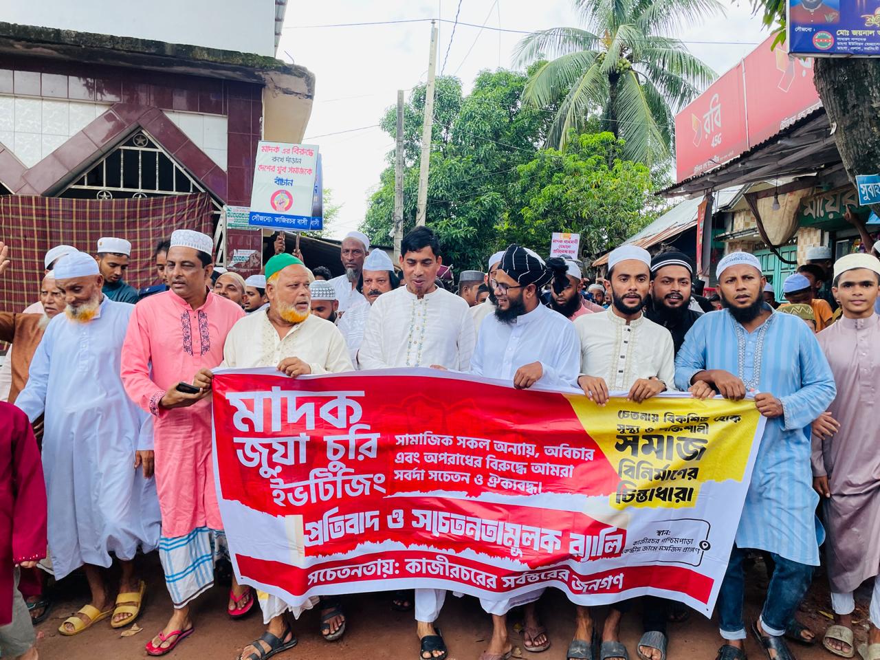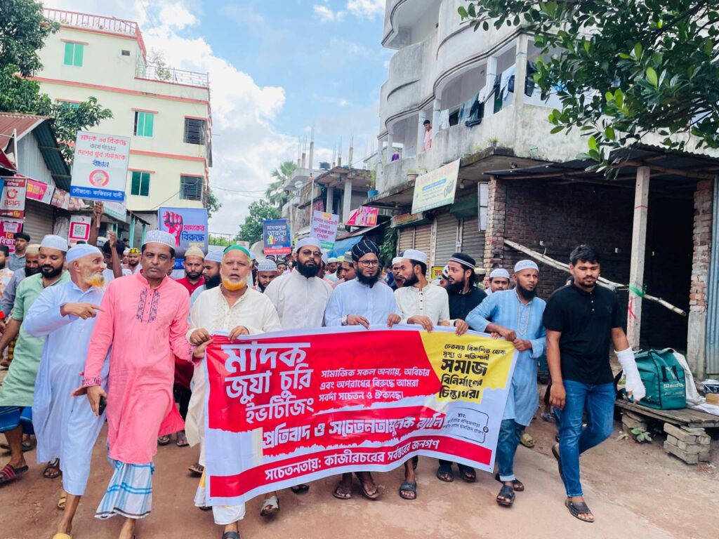 পলাশের ডাঙ্গার কাজিরচরে যুব সমাজ ও সচেতন এলাকাবাসীর উদ্যোগে “মাদকমুক্ত সমাজ গড়ার” প্রত্যয়ে একটি বর্ণাঢ্য র্যালি অনুষ্ঠিত হয়েছে।
