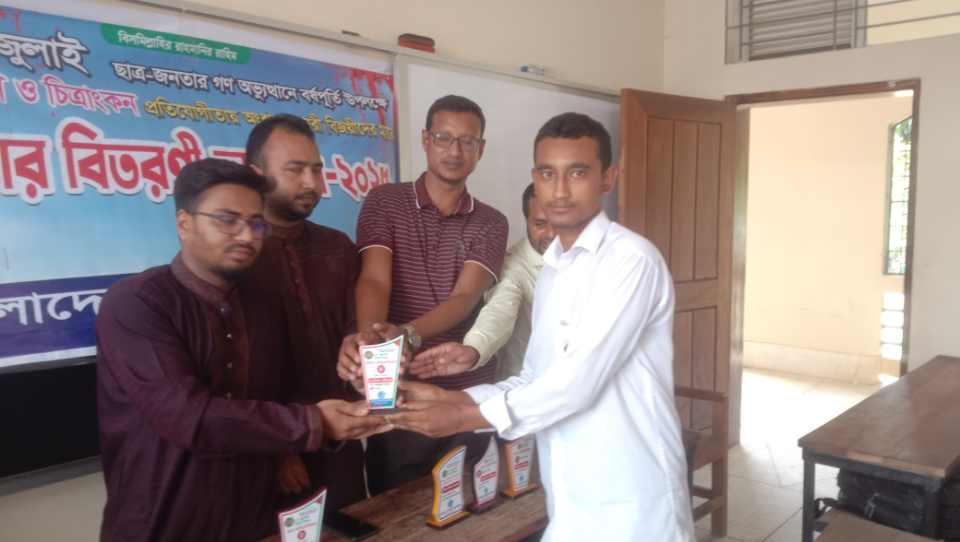 জামালপুরের ইসলামপুর উপজেলা শিবিরের উদ্যোগে বিভিন্ন শিক্ষাপ্রতিষ্ঠানে আয়োজিত ৩৬শে জুলাই উপলক্ষে রচনা, কবিতা ও চিত্রাঙ্কন প্রতিযোগিতা শেষ হয়েছে। এর ধারাবাহিকতায় মঙ্গলবার (২৬ আগস্ট) বিজয়ী শিক্ষার্থীদের মাঝে পুরস্কার বিতরণ করা হয়। শিক্ষার্থীদের সৃজনশীলতা বিকাশ এবং ৩৬শে জুলাইয়ের স্মৃতিকে প্রজন্মের মাঝে তুলে ধরতে এ প্রতিযোগিতা আয়োজন করা হয়।