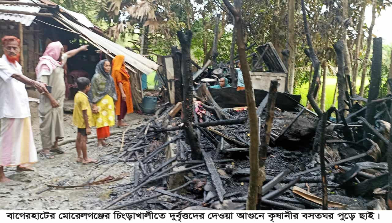বাগেরহাটে মোরেলগঞ্জের পল্লীতে গভীর রাতে দুর্বৃত্তদের দেয়া আগুনে কৃষানীর বসত ঘর সম্পূর্ন পুড়ে ছাই। ৫ লক্ষাধিক টাকার ক্ষতি। এ ঘটনায় মঙ্গলবার থানা পুলিশ মোশারেফ শেখ (৬০) নামে একজনকে গ্রেফতার করে জেলহাজতে প্রেরণ করেছে।