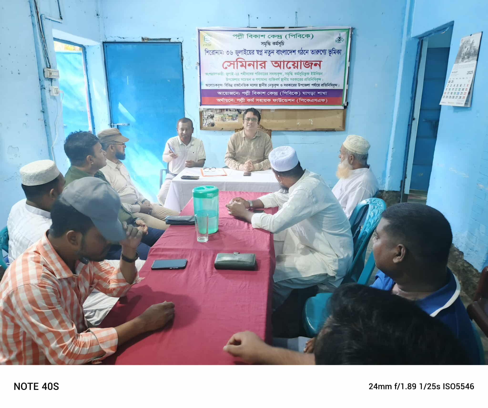 মিটামইন পল্লী কর্ম সহায়ক ফাউন্ডেশন ( পিকেএসএফ) এর অর্থায়নে পল্লী বিকাশ কেন্দ্রের আয়োজনে ঘাগড়া শাখায় জুলাই ৩৬ এর স্বপ্ন নতুন বাংলাদেশ গঠনে তারুণ্যের ভূমিকা শীর্ষক সেমিনার অনুষ্ঠিত হয়।