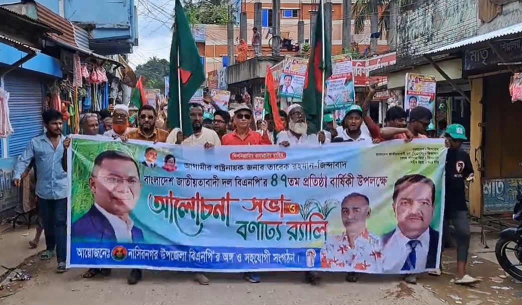 বাংলাদেশ জাতীয়তাবাদী দল (বিএনপি)’র ৪৭তম প্রতিষ্ঠাবার্ষিকী উপলক্ষে ব্রাহ্মণবাড়িয়ার নাসিরনগরে র্যালি ও আলোচনা সভা অনুষ্ঠিত হয়েছে।