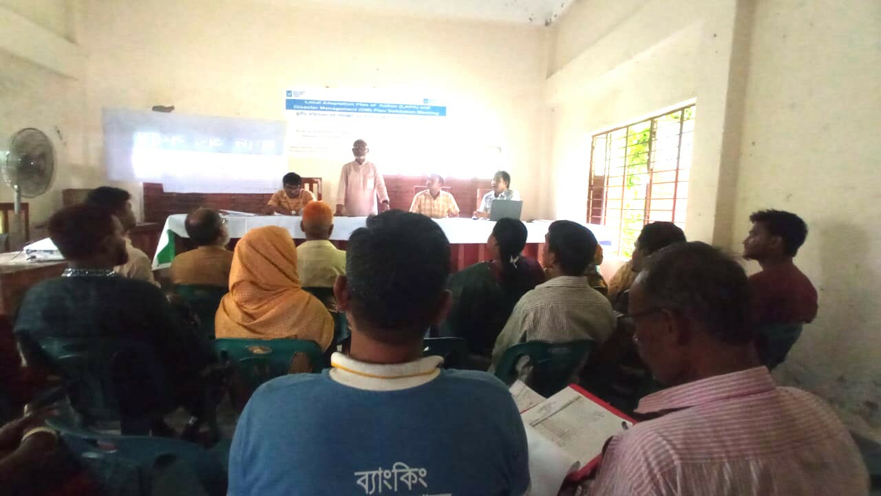 যাহা কাজের স্থায়ীত্ব ও জবাবদিহিতার জন্য গুরুত্বপুর্ন। সভায় উপস্থিত সভার সমাপনী বক্তব্যে লাপা ও ডিএম পরিকল্পনা প্রনয়নে গৃহীত বিভিন্ন কর্মকান্ডের উপর তার মূল্যবান মতামত প্রদান করেন এবং বলেন প্রস্তাবিত পরিকল্পনা দুটি গুরুত্ব দিয়ে বাস্তবায়নের উদ্যোগ গ্রহণ করলে তা আমাদের এলাকার দুর্যোগ ব্যবস্থাপনায় গুরুত্বপূর্ন ভূমিকা রাখবে।