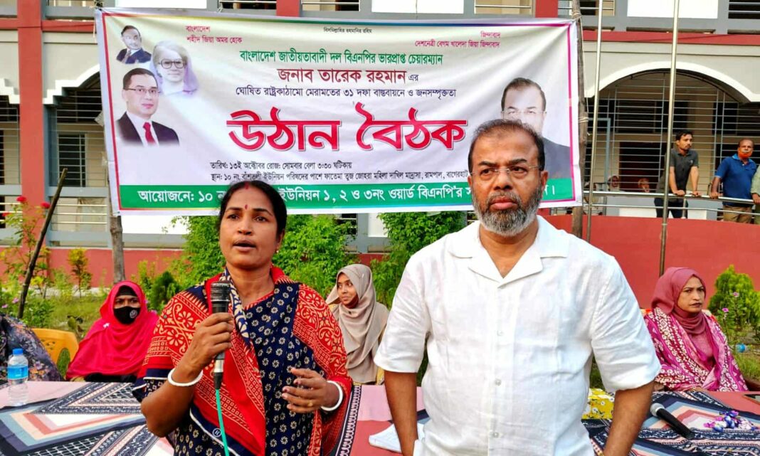 এ সময় বক্তব্য দেন বাগেরহাট জেলা বিএনপির যুগ্ম আহবায়ক লায়ন ডক্টর শেখ ফরিদুল ইসলাম। উঠান বৈঠকে তিনি বলেন, রামপাল, মোংলা ও ফকিরহাট এলাকার মানুষের মধ্যে অর্ধেক নারী। নারীদের বাদ রেখে সমাজের উন্নয়ন সম্ভব না। নারীদের স্বাবলম্বী করতে পারলে এবং তাদের জীবনমানের উন্নয়ন করতে পারলে বাংলাদেশ এগিয়ে যাবে। তারেক রহমানের হাতকে শক্তিশালী করতে হলে নারীদের সাথে নিয়ে দেশ গড়ার কাজে ঝাপিয়ে পড়তে হবে। যাতে করে সুখি সমৃদ্ধিশালী বাংলাদেশ গড়া সম্ভব হয়। এ জন্য তিনি উপস্থিত মা ও বোনদের সহযোগীতা কামনা করেন। উঠান বৈঠকে বিপুল সংখ্যক নারী উপস্থিত ছিলেন। এ সময় রামপাল উপজেলা বিএনপি ও অঙ্গসংগঠনের নেতাকর্মী উপস্থিত ছিলেন।