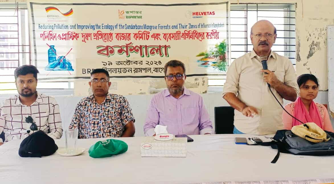 বাগেরহাটের রামপালে পলিথিন-প্লাষ্টিক দুষণ প্রতিরোধে এক কর্মশালা অনুষ্ঠিত হয়েছে। রবিবার (১৯ অক্টোবর) বেলা ১১ টায় উপজেলা বিআরডিবি মিলনায়তনে বাজার কমিটি ও ব্যাবসায়ী প্রতিনিধিদের সাথে করণীয় শীর্ষক এ কর্মশালা অনুষ্ঠিত হয়।