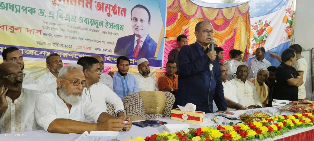 জাতি ধর্ম বর্ণ নির্বিশেষে আমরা সবাই ভাই ভাই সংখ্যালঘু বলতে কোন কথা নাই এমন উক্তি প্রকাশ করে বাগেরহাটের শরণখোলায় সদ্য সমাপ্ত শারদীয় দুর্গা উৎসব উপলক্ষে শুভ বিজয়া পুনর্মিলনী অনুষ্ঠানে প্রধান অতিথি হিসেবে বাংলাদেশ জাতীয়তাবাদী দল বিএনপির কেন্দ্রীয় কমিটির শিক্ষা বিষয়ক সম্পাদক ও উন্মুক্ত বিশ্ববিদ্যালয়ের ভিসি অধ্যাপক ডক্টর এবিএম ওবায়দুল ইসলাম হিন্দু সম্প্রদায়ের অনুষ্ঠানে প্রধান অতিথি হিসেবে বক্তব্যে এমন মন্তব্য করেন।