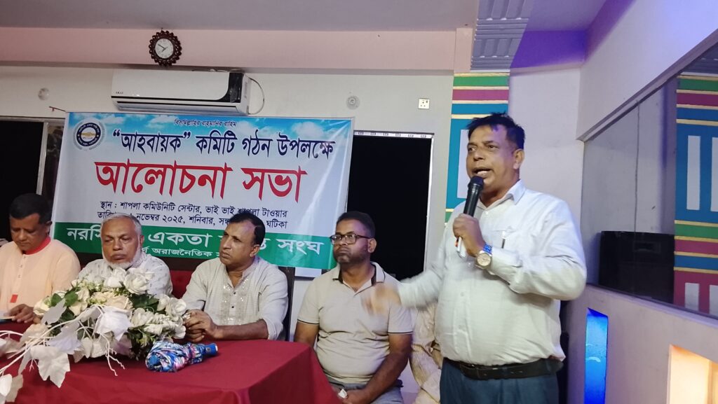 শনিবার ১ নভেম্বর সন্ধ্যায় নরসিংদীর শাপলা চত্বর এলাকার সচেতন মহলের পরিকল্পিত চিন্তা-চেতনায় এলাকার শান্তি-শৃঙ্খলা প্রতিষ্ঠা করতে শাপলা কমিউনিটি সেন্টারে আয়োজন করা হয় একটি আলোচনা সভা।