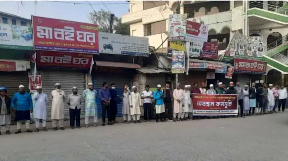 এসময় তারা আওয়ামী লীগের নাশকতা প্রতিরোধে বিভিন্ন শ্লোগান দেয়। সকাল ৭টার দিকে কিশোরগঞ্জ জেলা জামায়াতে ইসলামীর আমির ও কিশোরগঞ্জ-৫ (নিকলী–বাজিতপুর) আসনের প্রার্থী অধ্যাপক মো. রমজান আলী, নায়েবে আমির অধ্যক্ষ মোহাম্মদ আজিজুল হক, কিশোরগঞ্জ-৪ (ইটনা–মিঠামইন–অষ্টগ্রাম) আসনের প্রার্থী অ্যাডভোকেট মো. রোকন রেজা শেখ, রাজনৈতিক সেক্রেটারি অধ্যাপক আজিজুল হক কাজল, সদর উপজেলা জামায়াতের আমির মাওলানা নজরুল ইসলাম এবং জেলা ছাত্রশিবিরের সভাপতি হাসান আল মামুনের নেতৃত্বে নেতাকর্মীরা অবস্থান নেন।