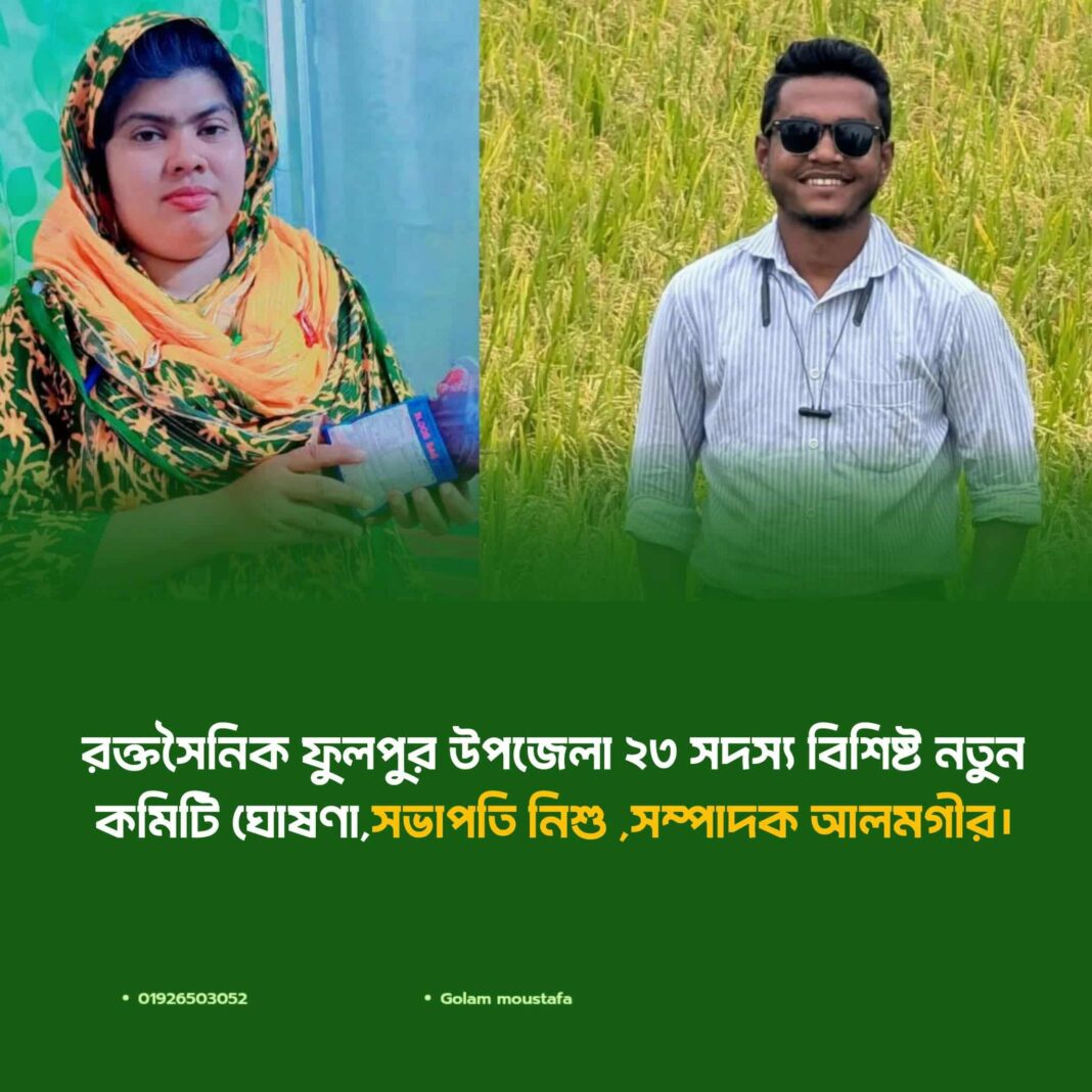 রক্তসৈনিক বাংলাদেশ ফাউন্ডেশন ও রক্তসৈনিক ময়মনসিংহ জেলা শাখার অধীনে রক্তসৈনিক ফুলপুর উপজেলা শাখার ২৩ সদস্য বিশিষ্ট নতুন কমিটি আনুষ্ঠানিকভাবে ঘোষণা করা হয়েছে।