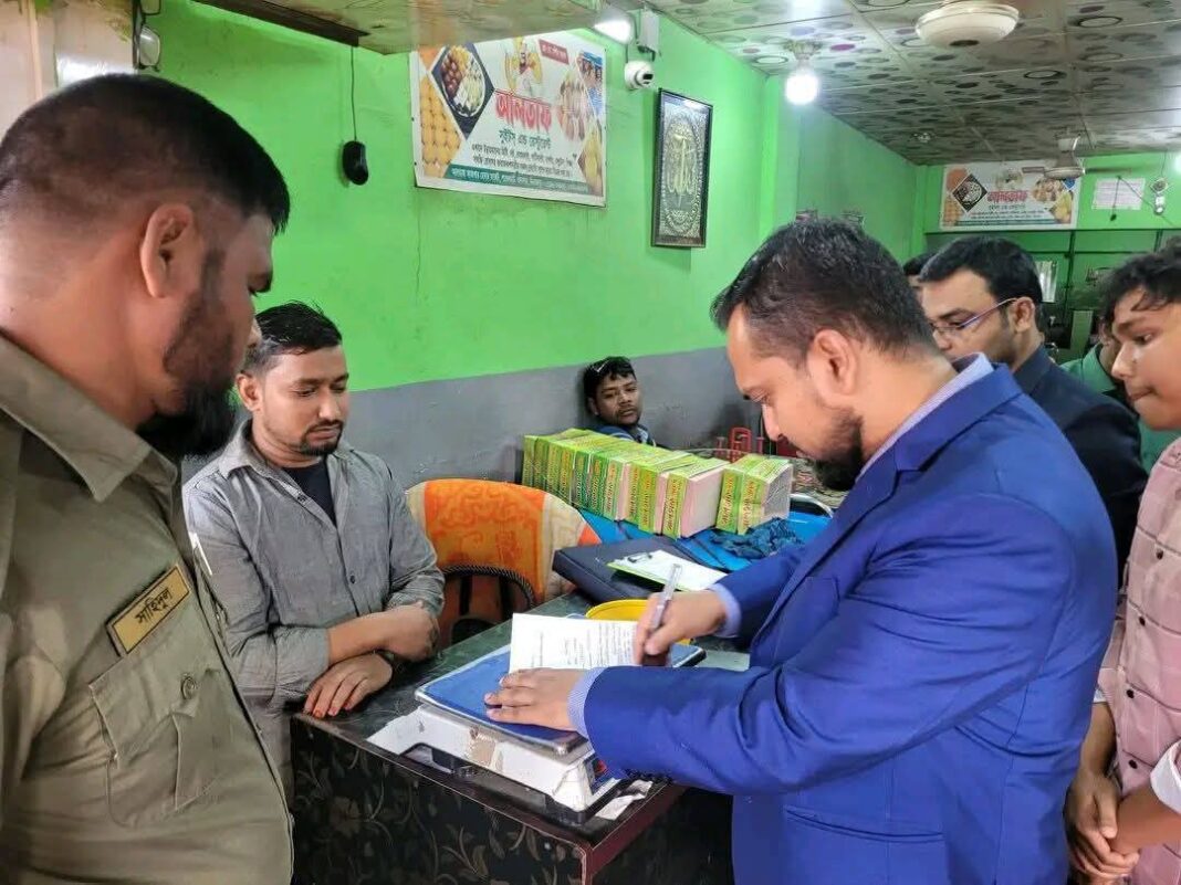 উপজেলা নির্বাহী কর্মকর্তা (ইউএনও) ও নির্বাহী ম্যাজিস্ট্রেট মোঃ কামরুজ্জামান সরকারের নেতৃত্বে পরিচালিত এ অভিযানে আলতাফ মিষ্টান্ন ভাণ্ডারের মালিক মমিনুল ইসলাম (২৮)–কে ২,০০০ টাকা এবং সলেমান চাল স্টোরের মালিক সোলেমান আলী (৫০)–কে ৫০০ টাকা জরিমানা করা হয়।