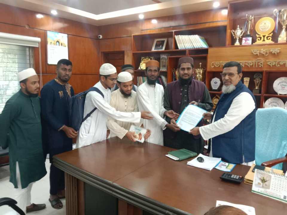 ভোলা সরকারি কলেজ ছাত্র সংসদ (BGCSU) নির্বাচনের তফসিল ঘোষণা ও কলেজ বাস বরাদ্দের সহ ৬ দফা দাবি পেশ করে আজ (০৪ ডিসেম্বর) বৃহস্পতিবার ইসলামী ছাত্র আন্দোলন বাংলাদেশ ভোলা সরকারি কলেজ শাখার পক্ষ থেকে অধ্যক্ষ বরাবর স্মারকলিপি প্রদান করা হয়।