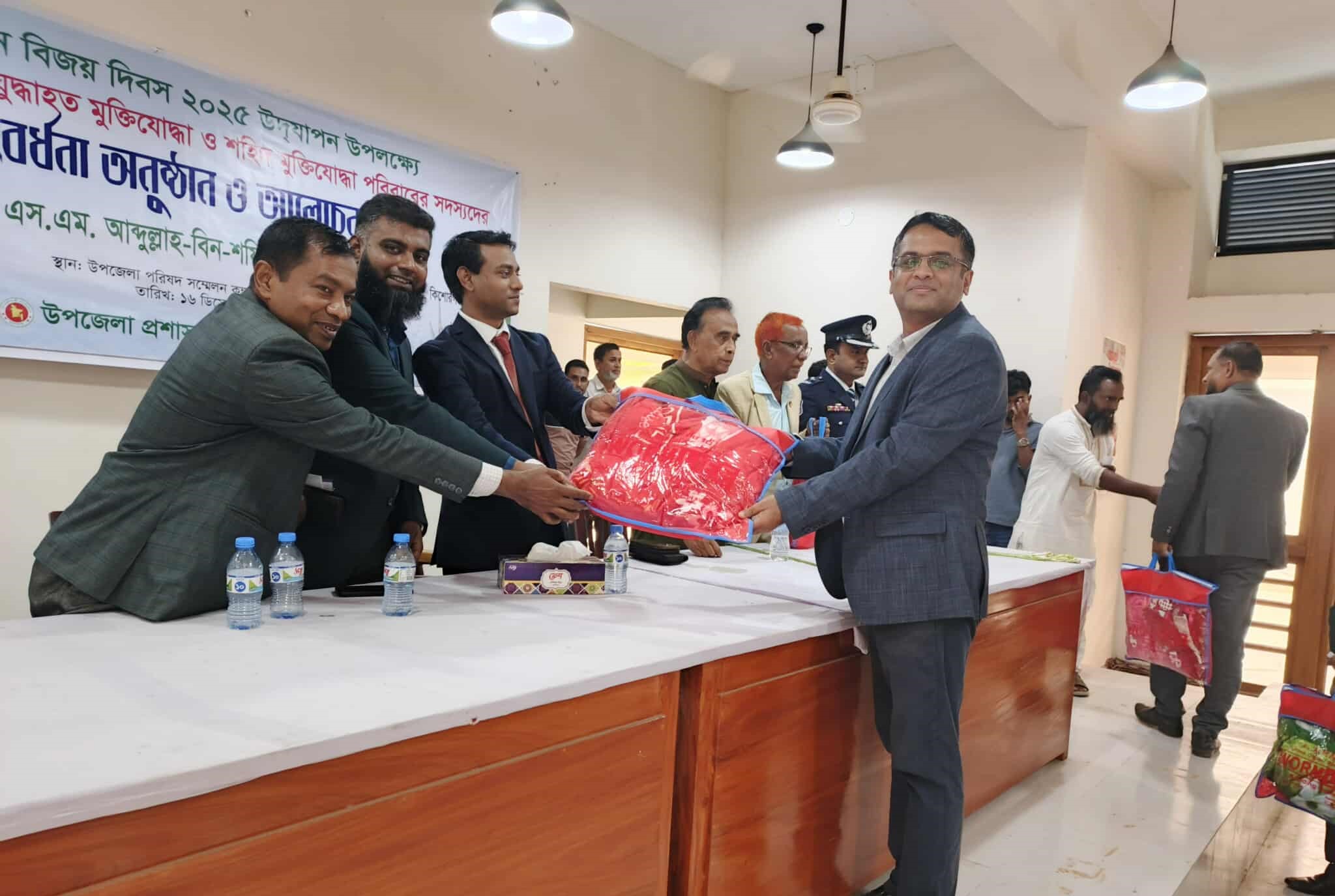 উপজেলা নির্বাহী কর্মকর্তা এস, এম আব্দুল্লাহ বিন শফিকের সভাপতিত্বে অনুষ্ঠিত সংবর্ধনা সভায় আলোচনায় অংশ নেয়, মোঃ ওবায়দুল ইসলাম অপু ( উপজেলা কৃষি কর্মকর্তা), এডভোকেট ফরিদ আহমেদ ( বীর মুক্তিযোদ্ধা) , নূর ইসলাম সিদ্দিকী ( বীর মুক্তিযোদ্ধা) , মোঃ হাসিবুর রহমান ( বীর মুক্তিযোদ্ধা) , ডাঃ মোঃ আব্দুল্লাহ আল সাফি ( উপজেলা স্বাস্থ্য কর্মকর্তা) , এডভোকেট জাহিদুল আলম জাহাঙ্গীর ( সভাপতি উপজেলা বিএনপি) , মোঃ লিয়াকত আলী ( ভারপ্রাপ্ত পুলিশ কর্মকর্তা মিটামইন) , মোঃ ইব্রাহীম মিয়া ( উপজেলা মুক্তিযোদ্ধা কমান্ডার) , প্রমুখ। অনুষ্ঠান সঞ্চালনায় ছিলেন, উপজেলা শিক্ষা কর্মকর্তা মোঃ সাদিকুর রহমান। পরে মুক্তিযোদ্ধা ও শহীদ পরিবারদের মাঝে শীতবস্ত্র ও খাবার বিতরণ করেন। অনুষ্ঠানে সরকারি কর্মকর্তা, সাংবাদিক, শিক্ষক, ও রাজনৈতিক নেতৃবৃন্দ উপস্থিত ছিলেন।
