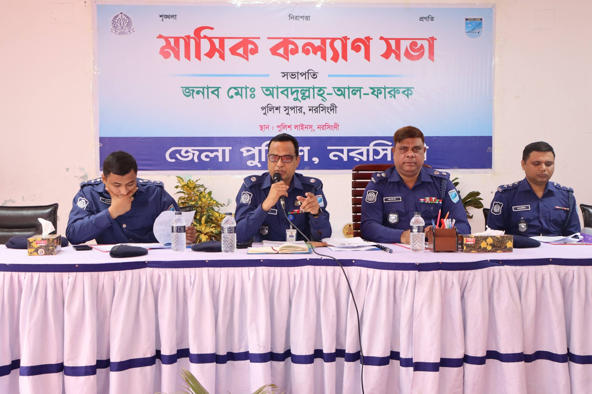 নরসিংদী জেলা পুলিশের মাসিক কল্যাণ সভা অনুষ্ঠিত হয়েছে। আজ রবিবার (২১ ডিসেম্বর ২০২৫ ইং) নরসিংদী পুলিশ লাইন্সে জেলা পুলিশ সুপার মোঃ আবদুল্লাহ্ আল ফারুকের সভাপতিত্বে এ সভা অনুষ্ঠিত হয়।