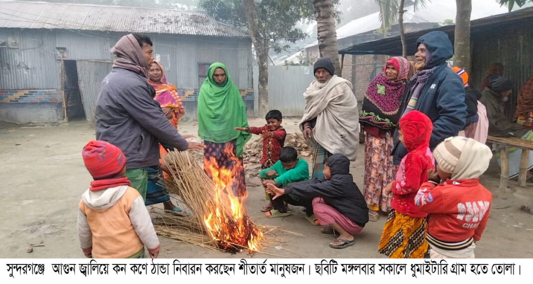 উত্তরের জনপদে চলতি শীত মৌসুমের শুরুতেই রোববার হতে ঘন কুয়াশা, কন কনে ঠান্ডা, হিমেল হাওয়া ও শৈত প্রবাহের কারণে অসহায় ও ছিন্নমুল পরিবারগুলো কাবু হয়ে পড়েছে। বিশেষ করে উপজেলার আটটি ইউনিয়নের উপর দিয়ে প্রবাহিত তিস্তা চরাঞ্চলের ভাসমান পরিবারগুলো ঠান্ডায় দুর্বিষহ জীবন যাপন করছে। স্থবির হয়ে পড়েছে সকল কার্যক্রম। ঘন কুয়াশা এবং ঠান্ডায় অফিস-আদালত, ব্যাংক-বীমা, শিক্ষা প্রতিষ্ঠানের কর্মকর্তা-কর্মচারী, ব্যবসায়ীরা যথা নিয়মে কর্মস্থলে যেতে পারছে না। যানবাহন চলাচল অত্যন্ত ঝুঁকিপূর্ণ হয়ে পরেছে। প্রতিনিয়ত ঘটছে সড়ক দূর্ঘটনা। ঠান্ডার কারণে নানাবিধ রোগব্যধির প্রার্দুভাব দেখা দিয়েছে। উপজেলা স্বাস্থ্য কমপ্লেক্স, ইউনিয়ন স্বাস্থ্য উপ-কেন্দ্র, কমিউনিটি ক্লিনিক ওষুধের দোকানগুলো রোগির ভিড় লক্ষ্য করা গেছে।