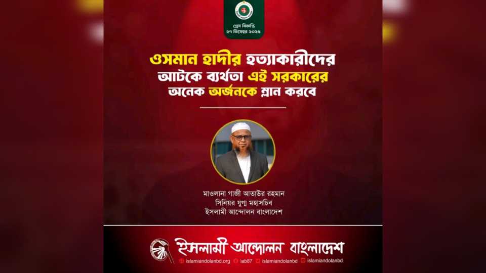 মাওলানা গাজী আতাউর রহমান আরও বলেন, ওসমান হাদীর জানাজা ও শোকপালনের ক্ষেত্রে সরকারকে অত্যন্ত আবেগপ্রবণ ও কাব্যিক ভূমিকা রাখতে দেখা গেলেও, অপরাধীদের ধরতে সরকারের সেই তৎপরতা চোখে পড়ছে না। অথচ আসন্ন নির্বাচনকে শান্তিপূর্ণ করতে এবং আধিপত্যবাদমুক্ত বাংলাদেশ গড়তে এই হত্যাকাণ্ডের সঙ্গে জড়িত অপশক্তিকে দমন করা অত্যন্ত জরুরি।