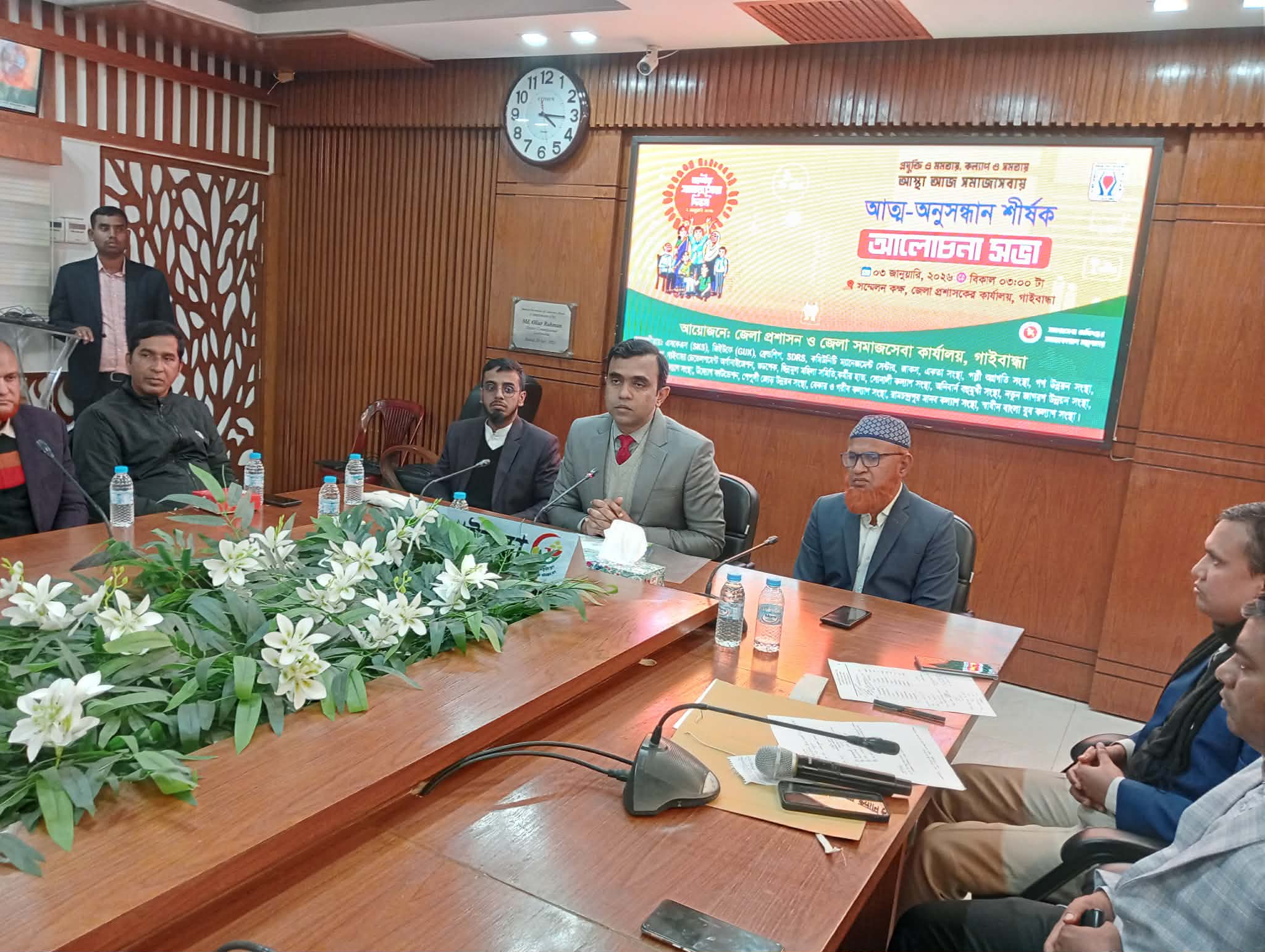 শনিবার (৩ জানুয়ারি) বিকাল ৩ টায় গাইবান্ধা জেলা প্রশাসন সভাকক্ষে সমাজসেবা অধিদপ্তরের আয়োজনে আলোচনা সভা অনুষ্ঠিত হয়। আলোচনা সভায় সভাপতিত্ব করেন সমাজসেবা বিভাগের উপপরিচালক মোঃ ইমাম হাসিম।