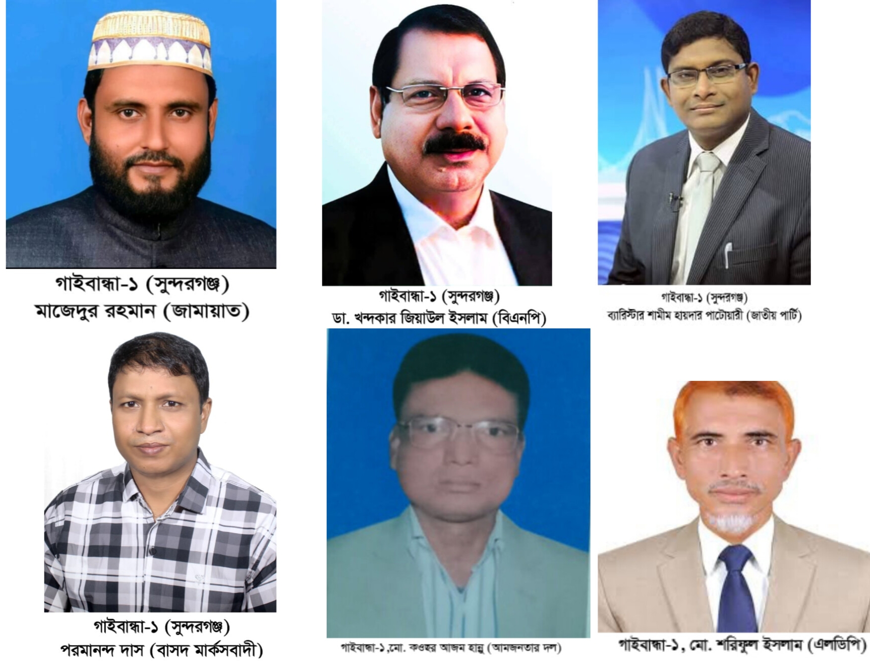 আসন্ন ত্রয়োদশ জাতীয় সংসদ নির্বাচনে গাইবান্ধার-১ সুন্দরগঞ্জ আসনে এমপি পদে ছয়জন প্রার্থীর মনোনয়ন পত্র বৈধ ঘোষণা করেছেন রিটানিং অফিসার। ঘোষিত তফসিল মোতাবেক গত বছরের ২৯ ডিসেম্বর ছিল মনোনয়ন পত্র সংগ্রহ এবং জমাদানের শেষ দিন। সে মোতাবেক গাইবান্ধা-১, সুন্দরগঞ্জ আসনে ১১ জন প্রার্থী মনোনয়ন পত্র সংগ্রহ করেন। এর মধ্যে স্বতন্ত্র প্রার্থী মো, আরেফিন আজিজ সরদার সিন্টু মনোনয়ন পত্র জমা দেননি বাকী ১০ জন প্রার্থী মনোনয়ন পত্র জমা দেন।
