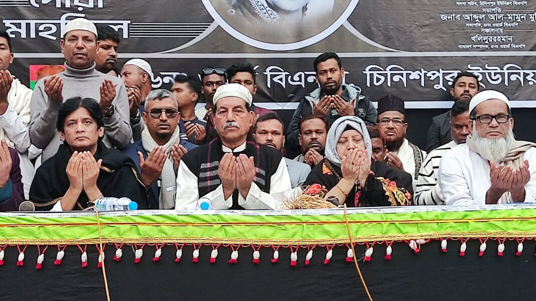 চিনিশপুর ইউনিয়ন বিএনপির সভাপতি আব্দুল আল মামুন মুন্সির সভাপতিত্বে এ দোয়া মাহফিল অনুষ্ঠিত হয়।