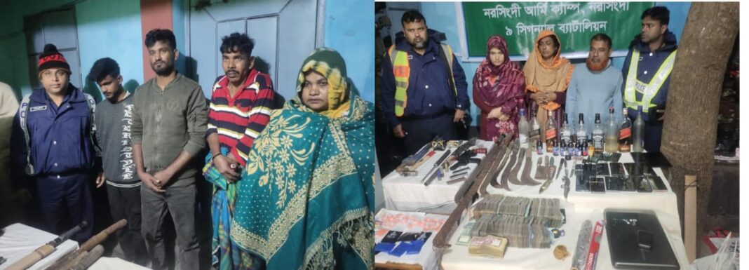নরসিংদীর শিবপুর উপজেলায় সন্ত্রাস ও মাদকের বিরুদ্ধে আইনশৃঙ্খলা বাহিনীর কঠোর অভিযানে ভেঙে পড়েছে একটি সংঘবদ্ধ অপরাধ সাম্রাজ্য।