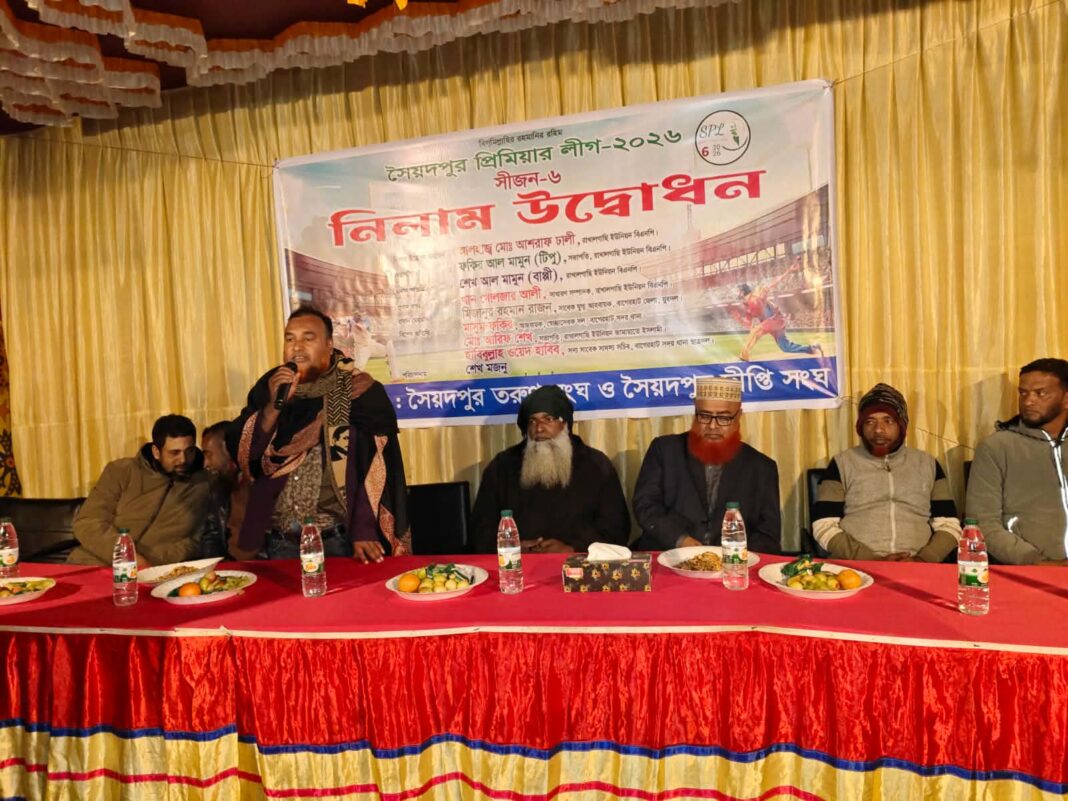 সৈয়দপুর প্রিমিয়ার লিগ আসর-৬ এর উদ্বোধনী ম্যাচ আগামী ৩১ জানুয়ারি উদ্বোধনের মধ্যে দিয়ে পর্দায় উঠবে এবং নিলাম অনুষ্ঠানে নিবন্ধনকৃত ১৫০ জন খেলোয়াড়’সহ অসংখ্য ক্রিকেটপ্রেমী’রা নিলাম অনুষ্ঠানে অংশগ্রহন করেন।