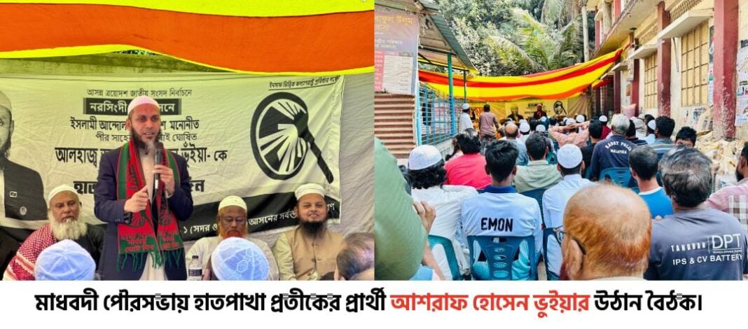 নরসিংদী-১ (সদর–মাধবদী) আসনে মাধবদী পৌরসভার ১১নং ওয়ার্ড শাখার উদ্যোগে হাতপাখা প্রতীকের সংসদ সদস্য পদপ্রার্থী আলহাজ্ব আশরাফ হোসেন ভূঁইয়ার নির্বাচনী উঠান বৈঠক অনুষ্ঠিত হয়েছে।