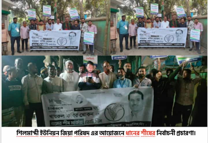 নরসিংদীর শিলমান্দী ইউনিয়নে ধানের শীষ প্রতীকের পক্ষে ব্যাপক প্রচারণা মিছিল অনুষ্ঠিত হয়েছে জিয়া পরিষদ নেতা ও প্রবাসী মো. রাসেল এর তত্বাবধানে। শনিবার (৭ তারিখ) বিকেলে শিলমান্দী ইউনিয়ন জিয়া পরিষদের উদ্যোগে এ মিছিলের আয়োজন করা হয়।