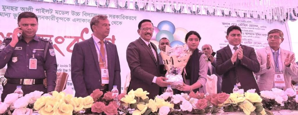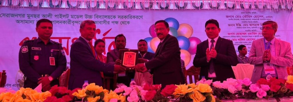 নরসিংদীর রায়পুরা উপজেলার ঐতিহ্যবাহী শিক্ষা প্রতিষ্ঠান সেরাজনগর মুনছর আলী পাইলট মডেল সরকারি উচ্চ বিদ্যালয় সরকারিকরণে অসামান্য ভূমিকা পালনকারী চার কৃতী ব্যক্তিকে এলাকাবাসীর পক্ষ থেকে এক বর্ণাঢ্য গণসংবর্ধনা প্রদান করা হয়েছে।