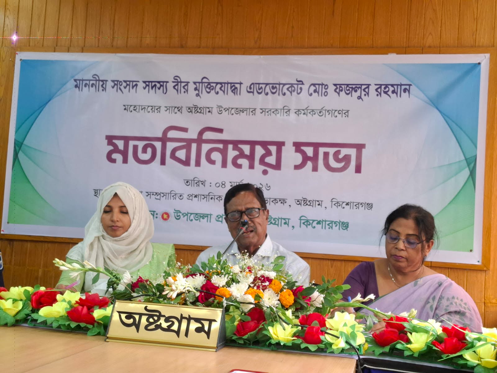 কিশোরগঞ্জের অষ্টগ্রামে মাননীয় সংসদ সদস্য, বীর মুক্তিযোদ্ধা অ্যাডভোকেট ফজলুর রহমানের সাথে উপজেলা প্রশাসনের এক মতবিনিময় সভা অনুষ্ঠিত হয়েছে। বুধবার ৪ ই মার্চ বিকাল ৩ টায় সভাটি অনুষ্ঠিত হয় অষ্টগ্রাম উপজেলা সম্প্রসারিত প্রশাসনিক ভবনের হলরুমে।